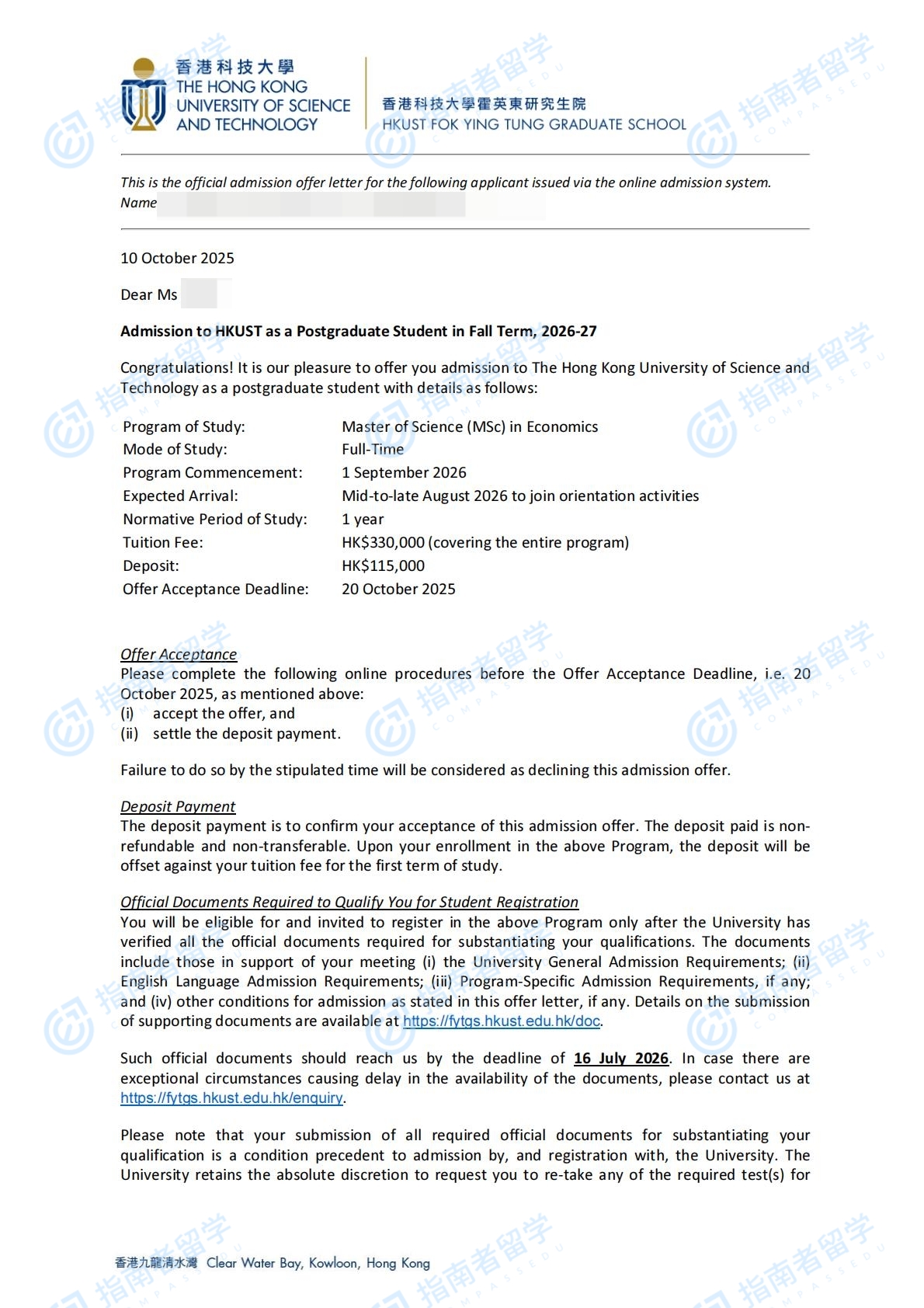 通过香港科技大学经济学硕士学位课程的学习,学生将