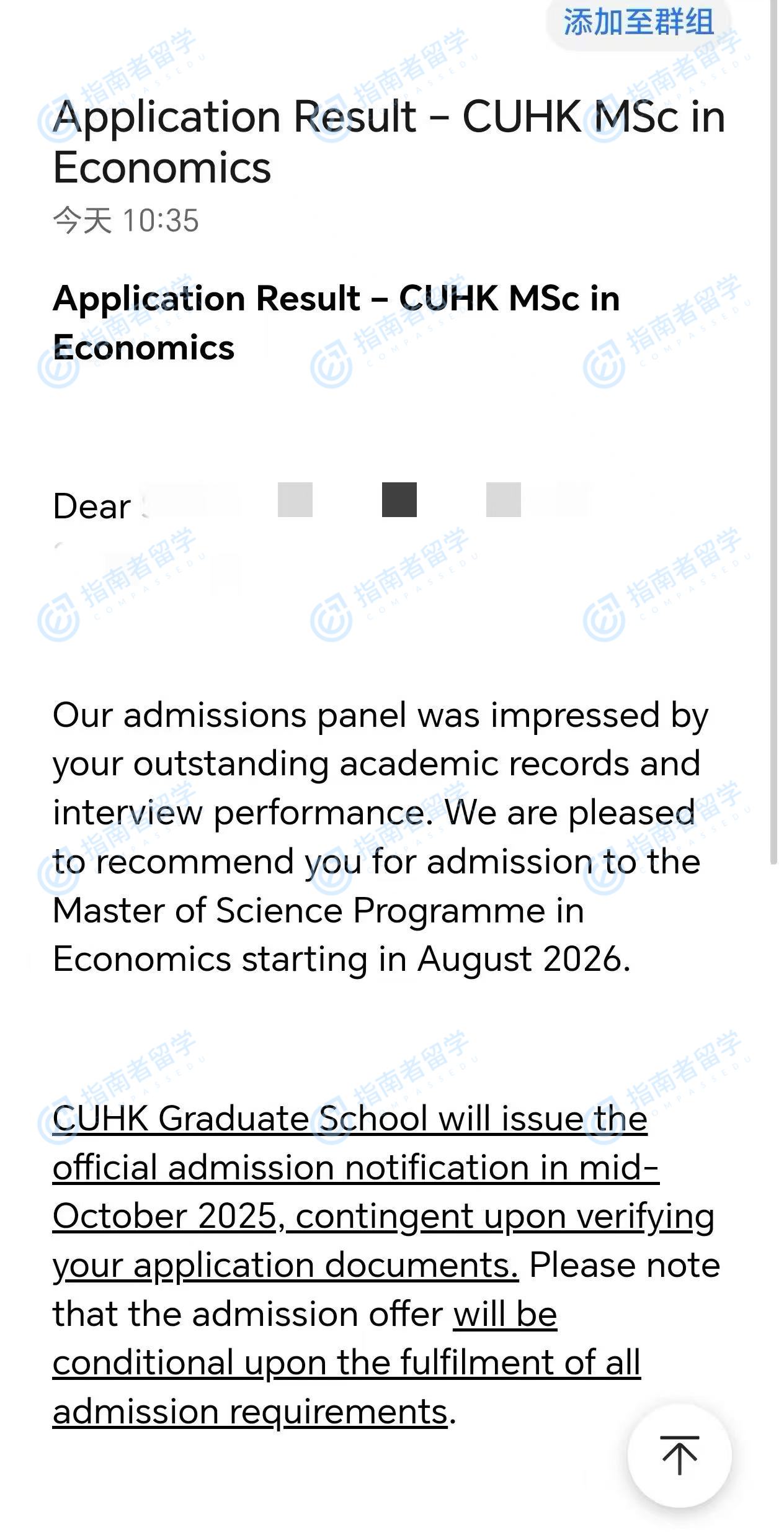 香港中文大学经济学理学硕士研究生offer一枚