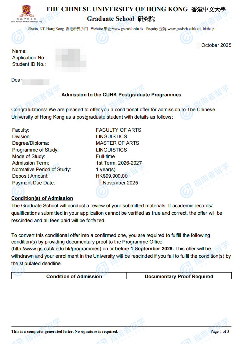需要提供B等级证明,持有香港中文大学认可的大学本科荣誉学位或同等学历