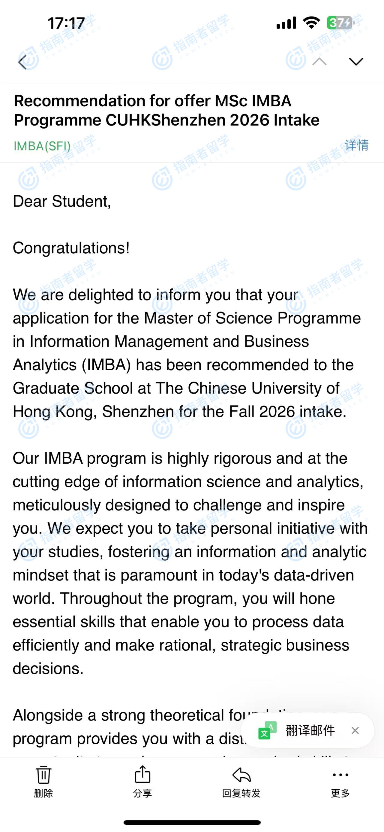 香港中文大学信息管理 & 商业分析理学硕士(CUHK-Shenzhen)研究生offer一枚