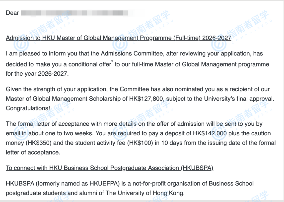 香港大学环球管理学硕士研究生offer一枚