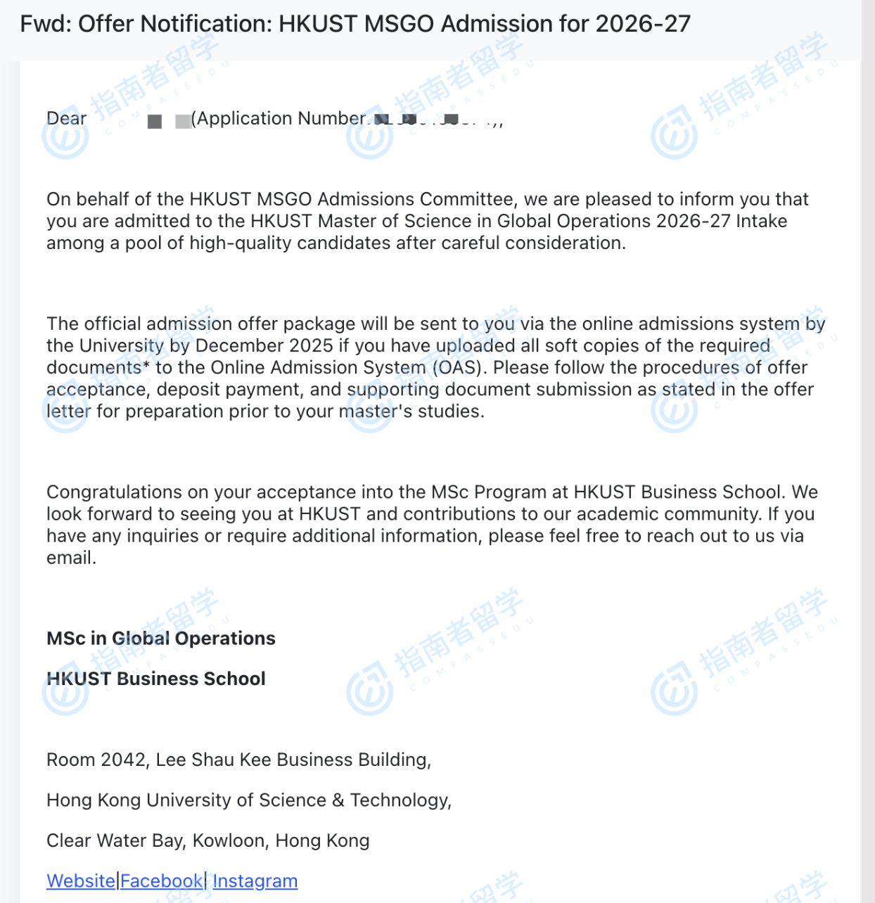 香港科技大学全球运营理学硕士研究生offer一枚