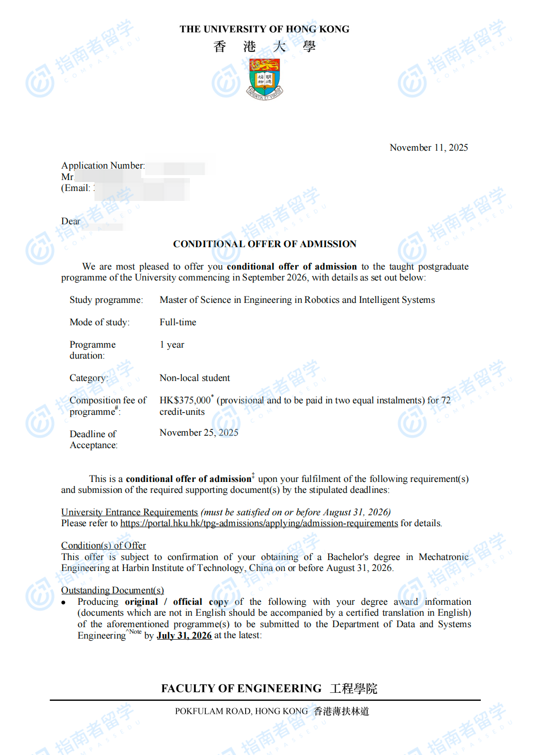 香港大学机器人与智能系统(工程)理学硕士研究生offer一枚