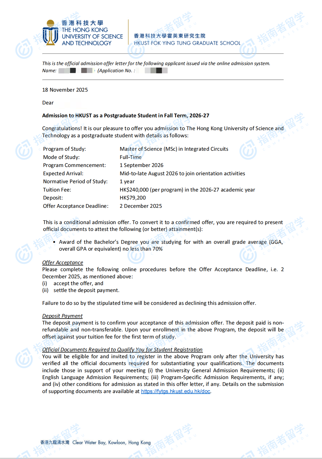 香港科技大学集成电路理学硕士研究生offer一枚