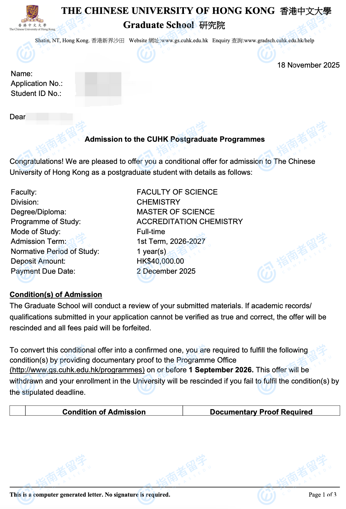 香港中文大学认证化学理学硕士课程由香港中文大学的化学系开设,该专业由教育领域、检测部门和认证化学领域的专家(诸如大学教授、前政府实验室专业人员、前认证官、有丰富经验的香港认证服务评估专家和检测实验室的管理层)进行授课。