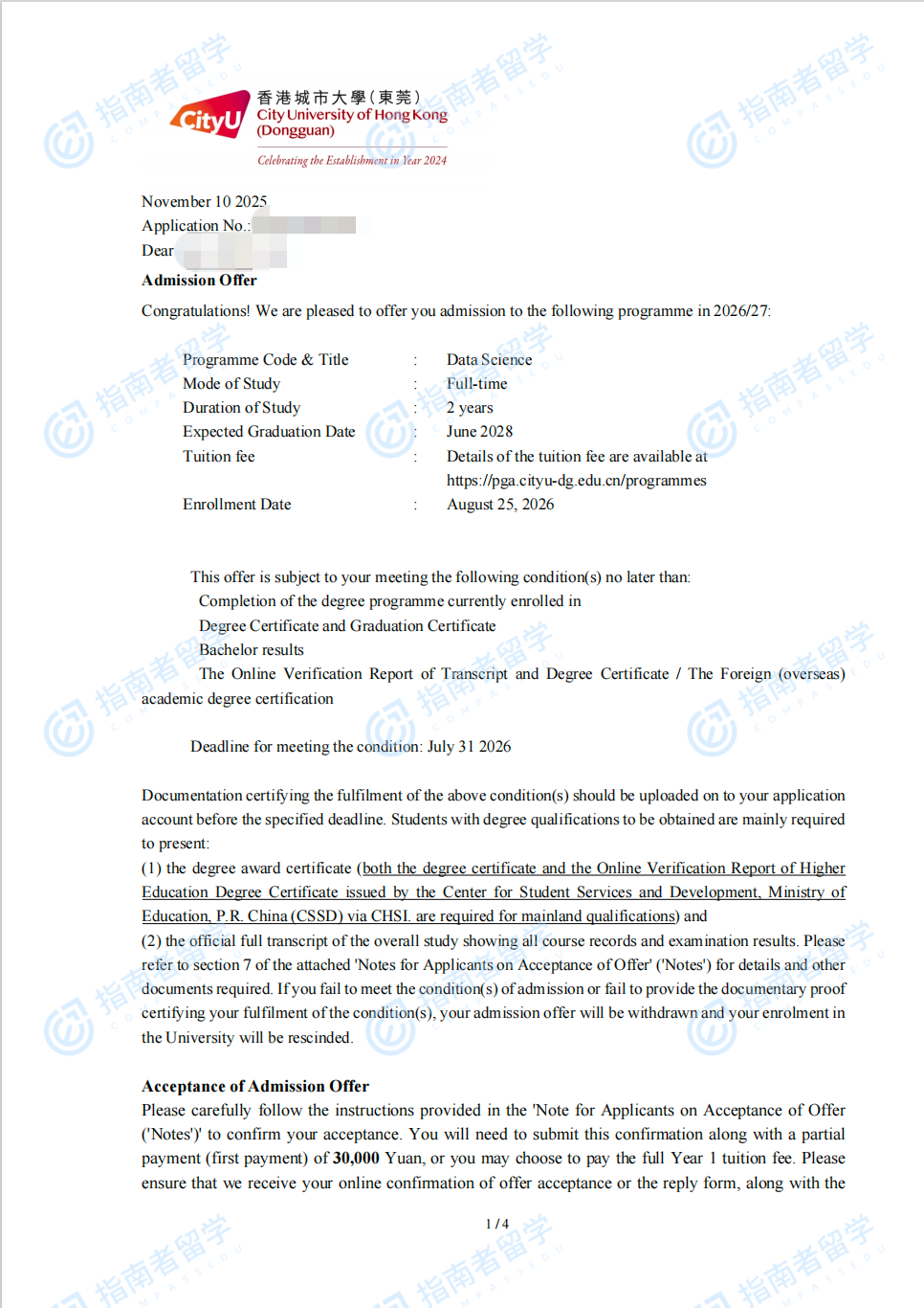 香港城市大学数据科学理学硕士(CityU-DG)研究生offer一枚
