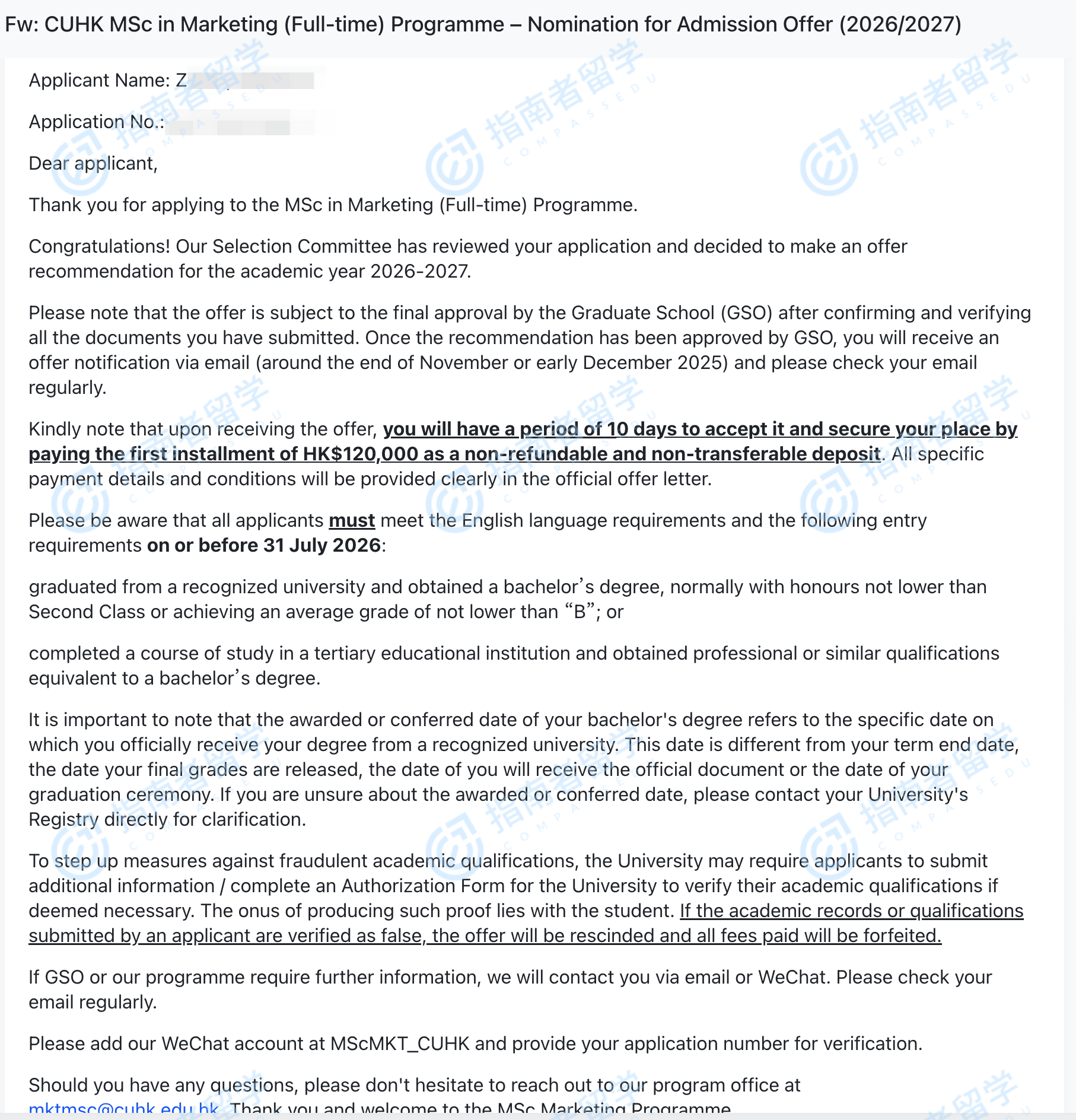 香港中文大学市场营销理学硕士研究生offer一枚