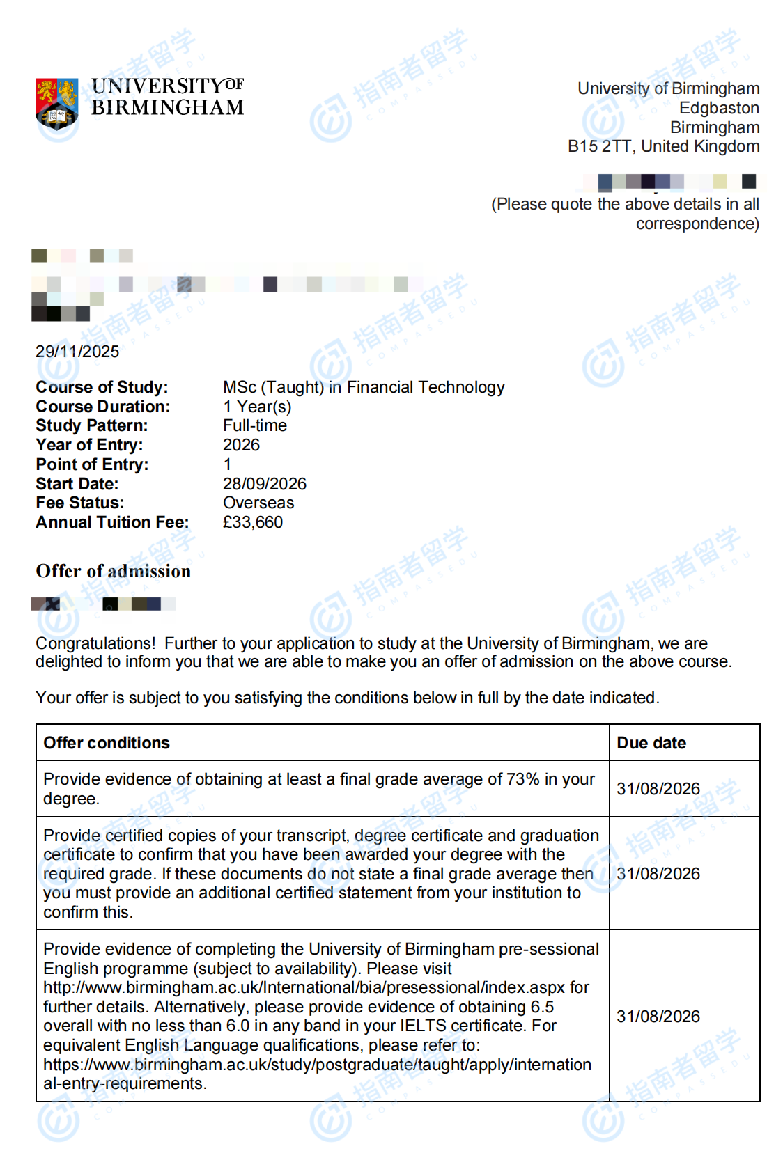 伯明翰大学金融科技理学硕士项目致力于让学生能够成为这个竞争激烈的专家计划的的一部分,使学员能够与专家,员工和同学建立更密切的关系。毕业生可以从事实时行业,将理论、密集实践和工业参与相结合。示例项目包括:建立众筹平台,应用区块链服务减少货币欺诈,开发算法交易应用程序和开发金融服务应用程序。该学院的可持续金融和创新中心将为学员提供与公司合作的开展基于客户的项目的机会,与研究专家合作,获得最新的金融工具和应用程序开发软件的实践经验。学生还有机会参加未来领导者证书,参与由跨国公司设置的激动人心的虚拟实时项目,让他们清楚地了解技术对商业世界的影响以及对他们自己的职业生涯的影响。本课程侧重于现实世界的投资挑战,重点是进行可持续的商业实践,了解如何在伯明翰为负责任的自己的未来而努力。