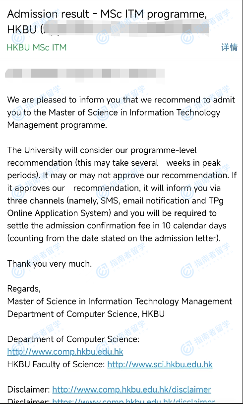 香港浸会大学资讯科技管理理学硕士研究生offer一枚