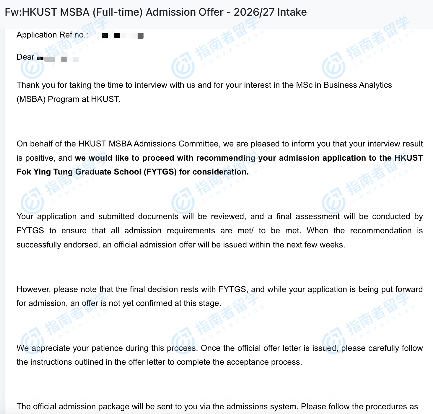 香港科技大学商业分析理学硕士研究生offer一枚