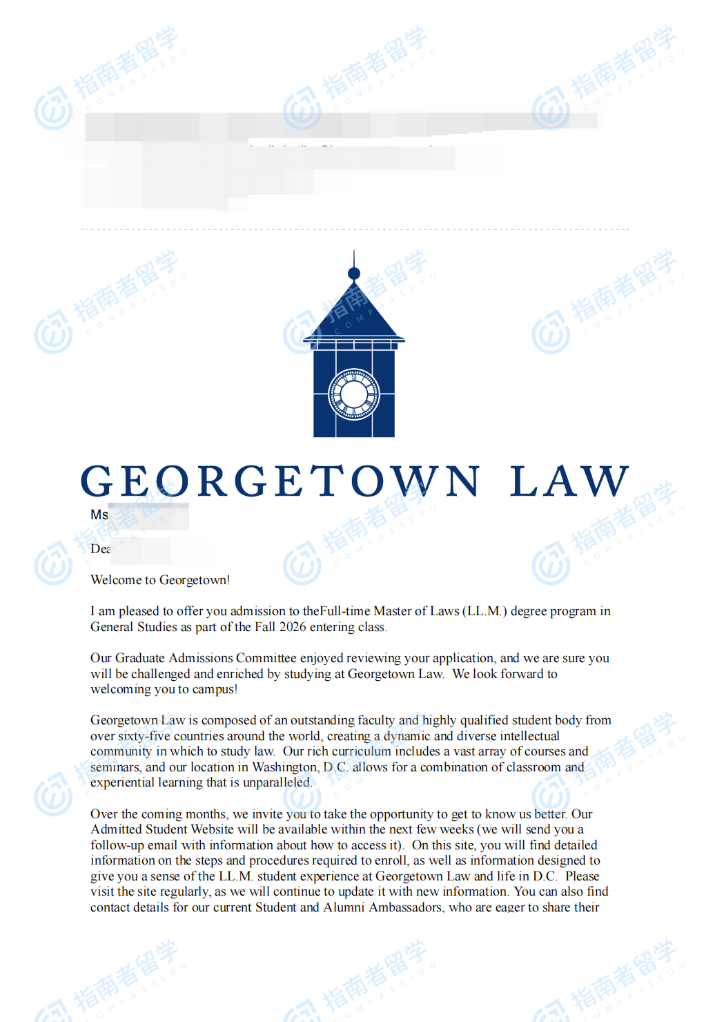 乔治城大学法学硕士研究生offer一枚