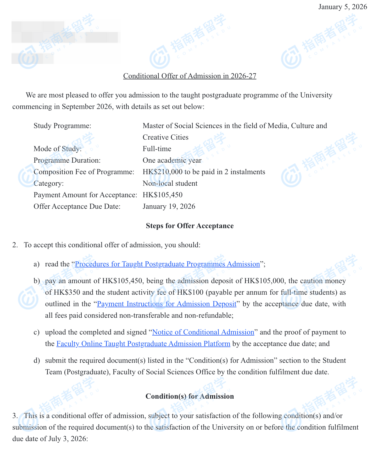 香港大学媒体、文化与创意城市社会科学硕士研究生offer一枚