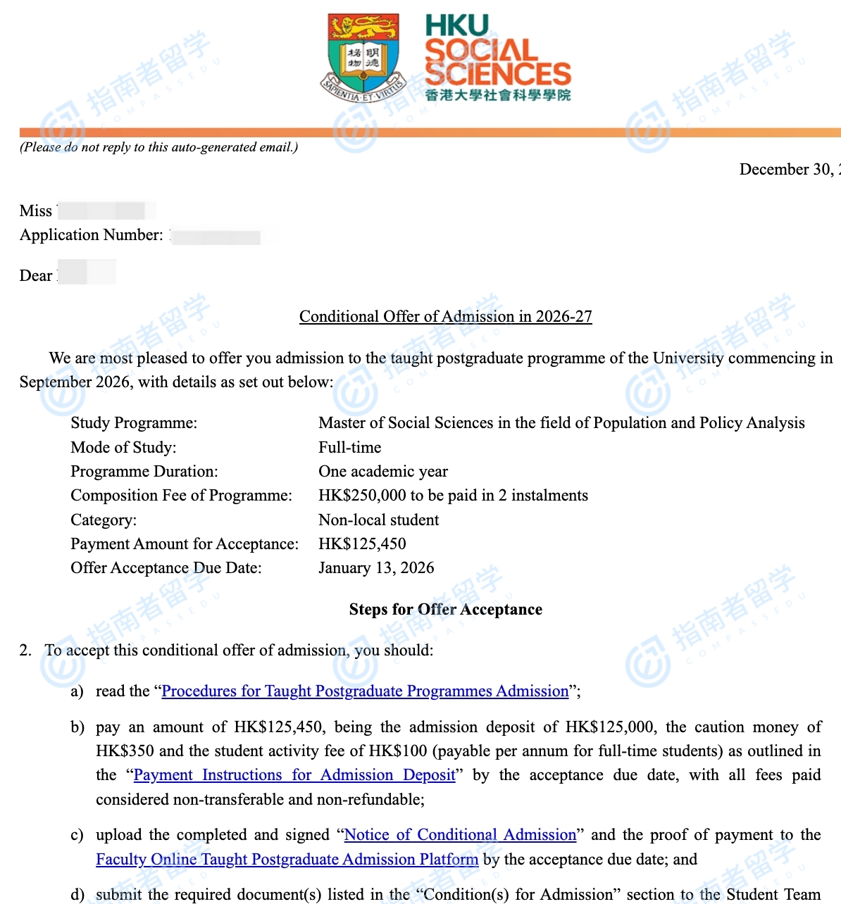 香港大学人口与政策分析社会科学硕士研究生offer一枚