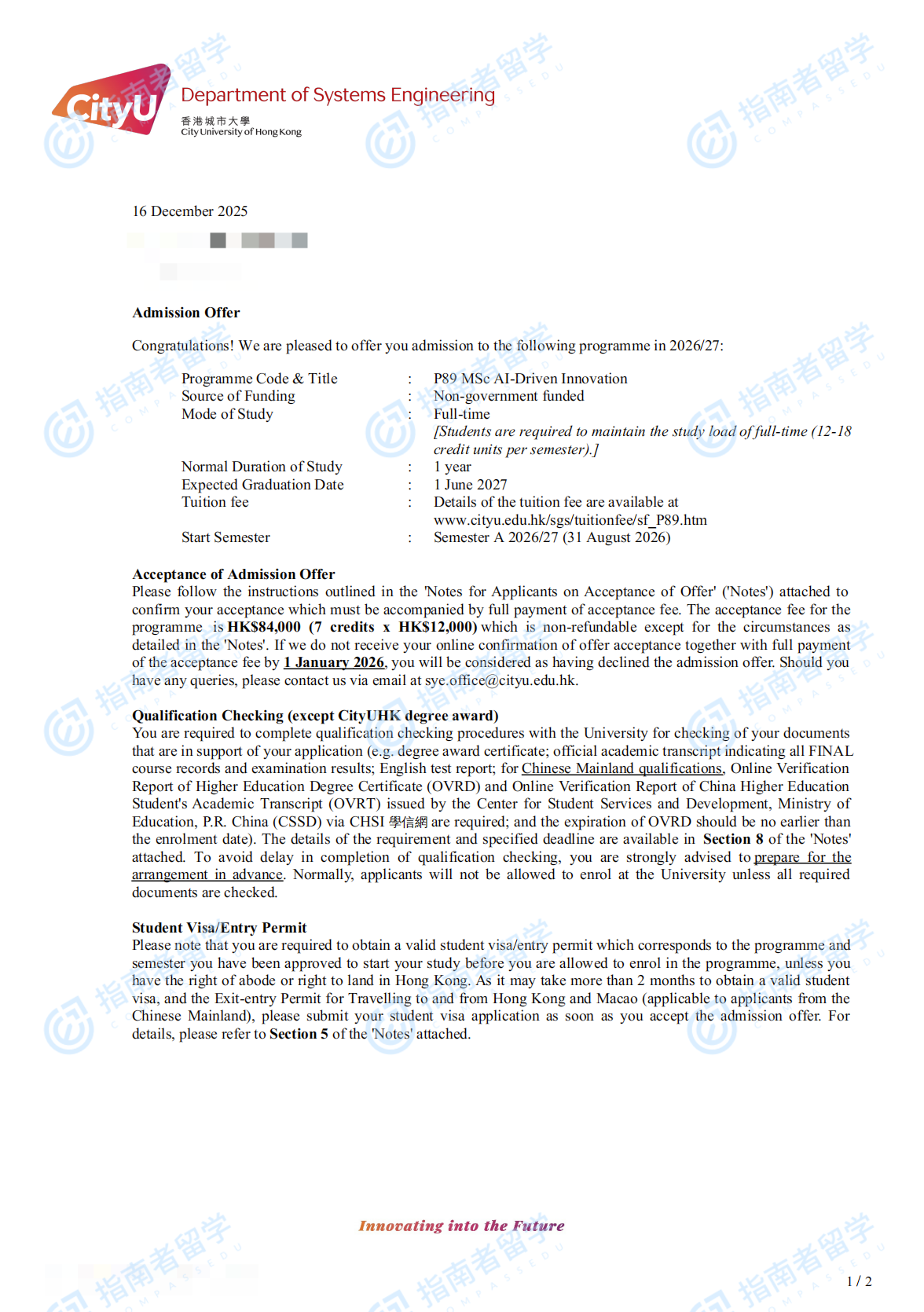 香港城市大学人工智能驱动创新理学硕士研究生offer一枚