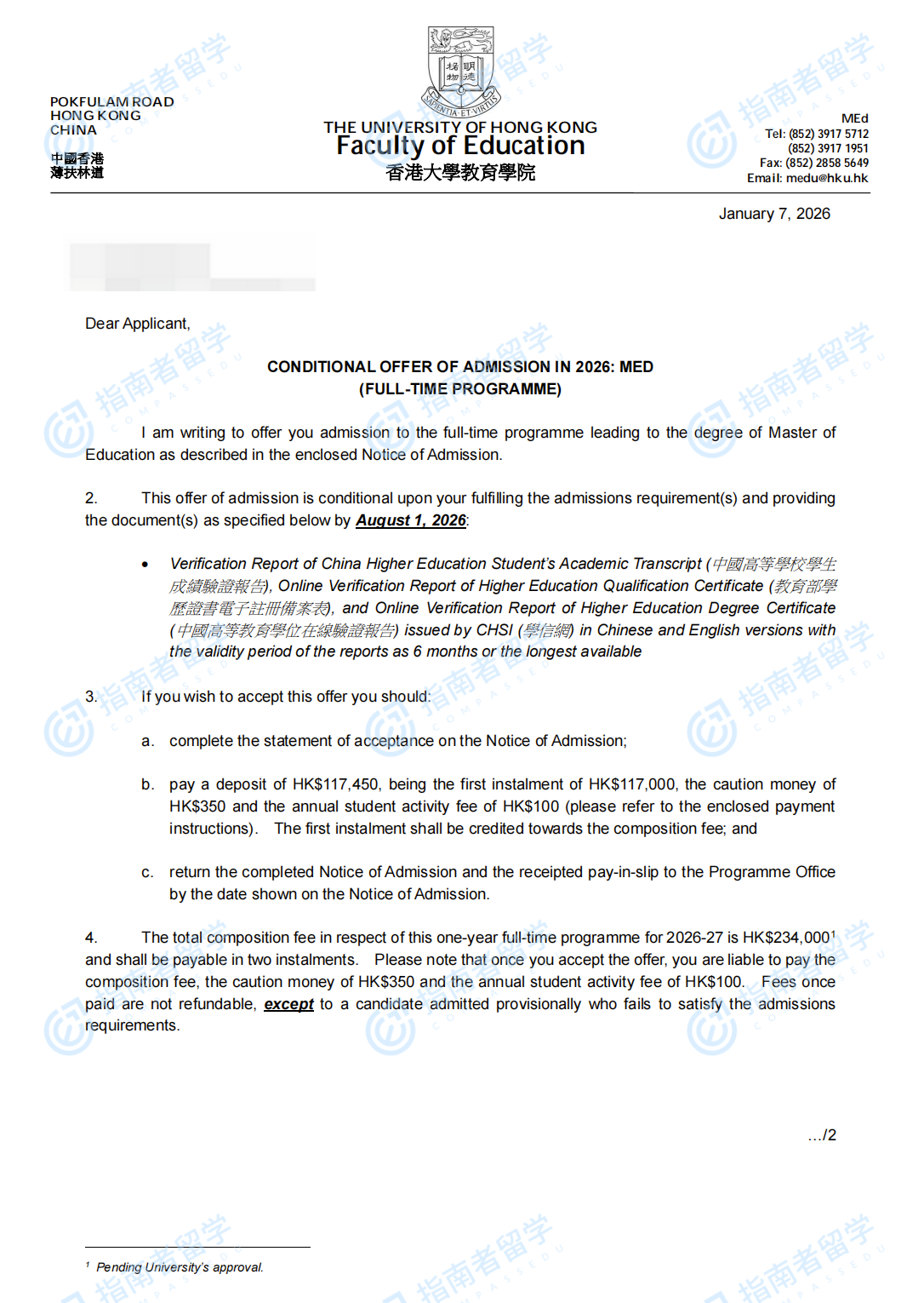 香港大学教育学硕士(教育心理学研究)研究生offer一枚