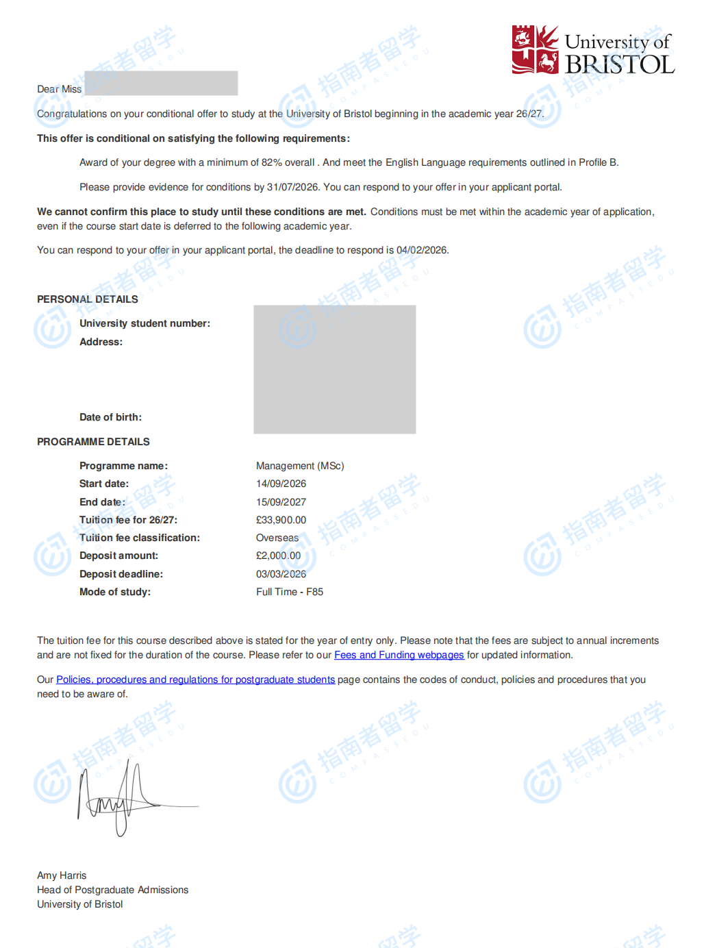 布里斯托大学管理学理学硕士研究生offer一枚
