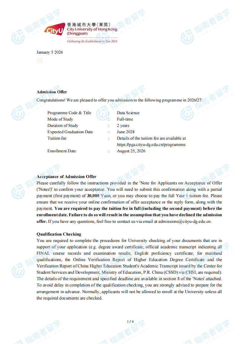 香港城市大学数据科学理学硕士(CityU-DG)研究生offer一枚