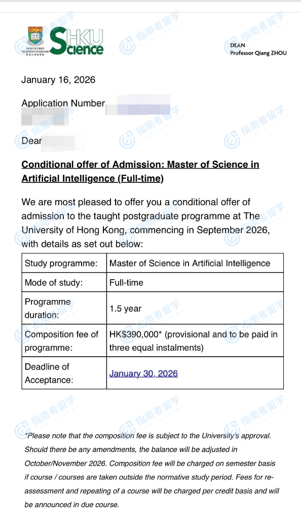 香港大学人工智能理学硕士研究生offer一枚