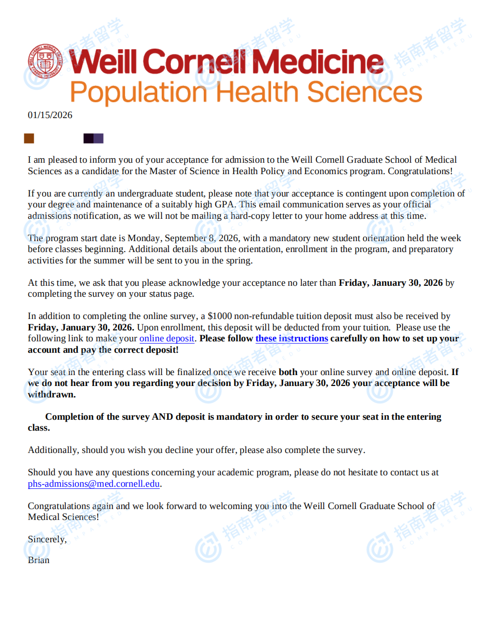 康奈尔大学卫生政策与经济学硕士研究生offer一枚