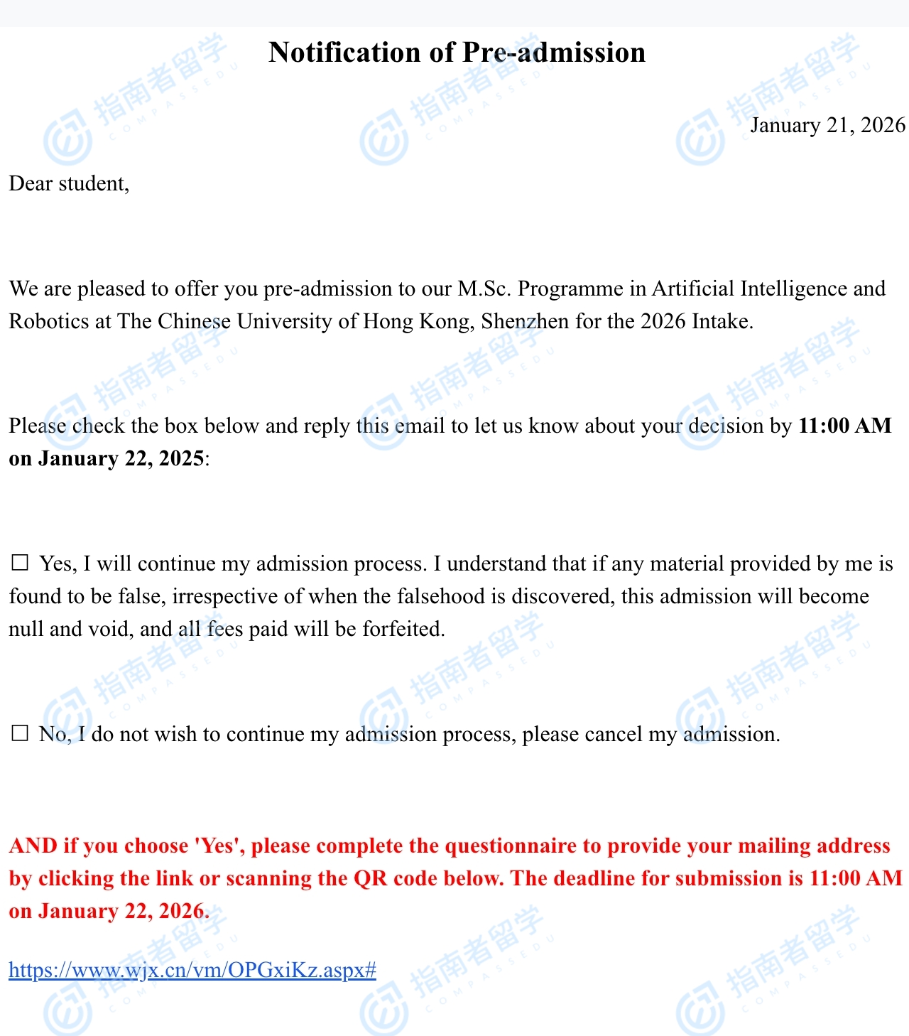 香港中文大学人工智能与机器人理学硕士(CUHK-Shenzhen)研究生offer一枚