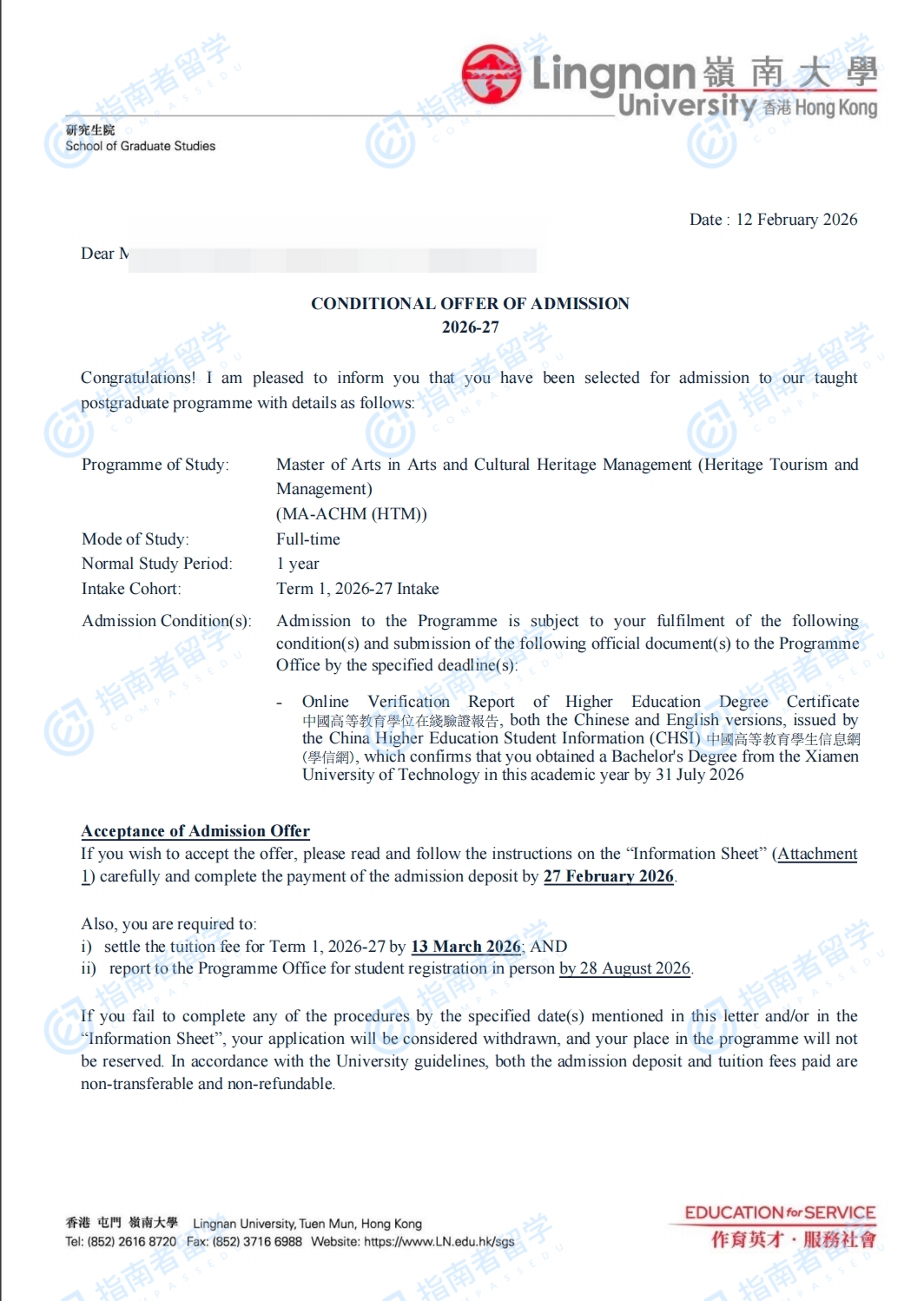 <p>香港岭南大学艺术与文化遗产管理文学硕士为一年全日制课程,由两校合办。学生完成课业之后,需要完成硕士论文。毕业生将同时获得两所大学授予的硕士学位。此硕士项目授课内容跨越中西文化艺术,全面介绍文化、社会、文化经济与艺术之间的关系。此项目的授课重点在于视觉文化,电影戏剧,声效音乐,文化遗产、管理技能、政治法律,大众传播及相应的道德操守问题。</p>