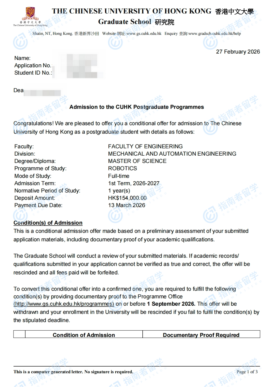 香港中文大学机器人学理学硕士研究生offer一枚