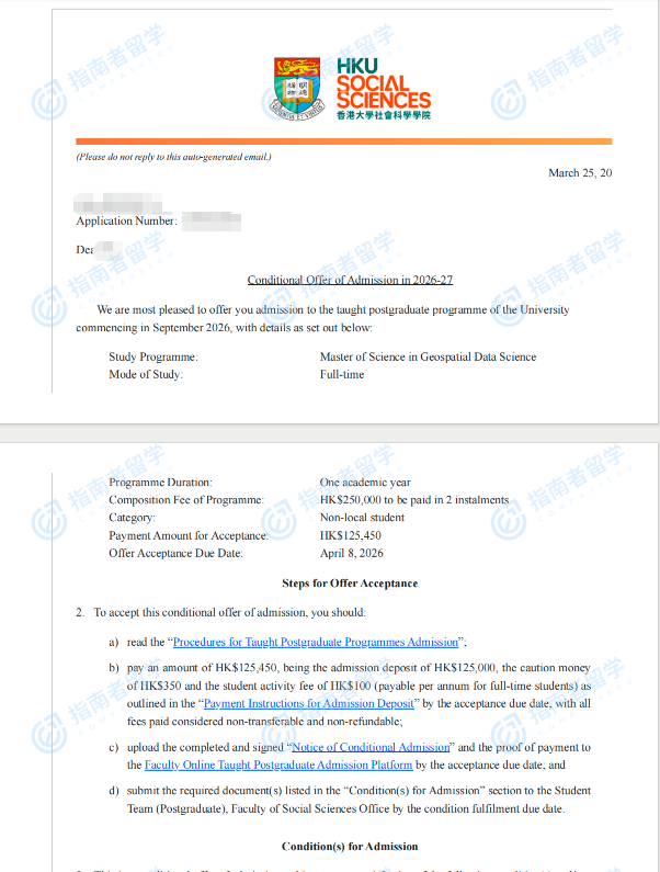 香港大学地理空间数据科学理学硕士研究生offer一枚