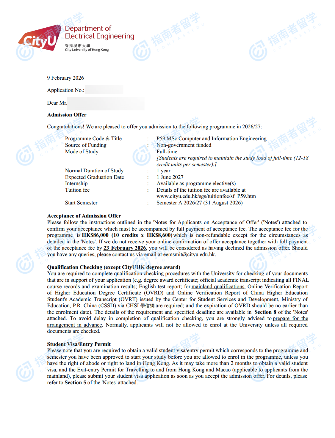 香港城市大学电子计算机与资讯工程理学硕士研究生offer一枚