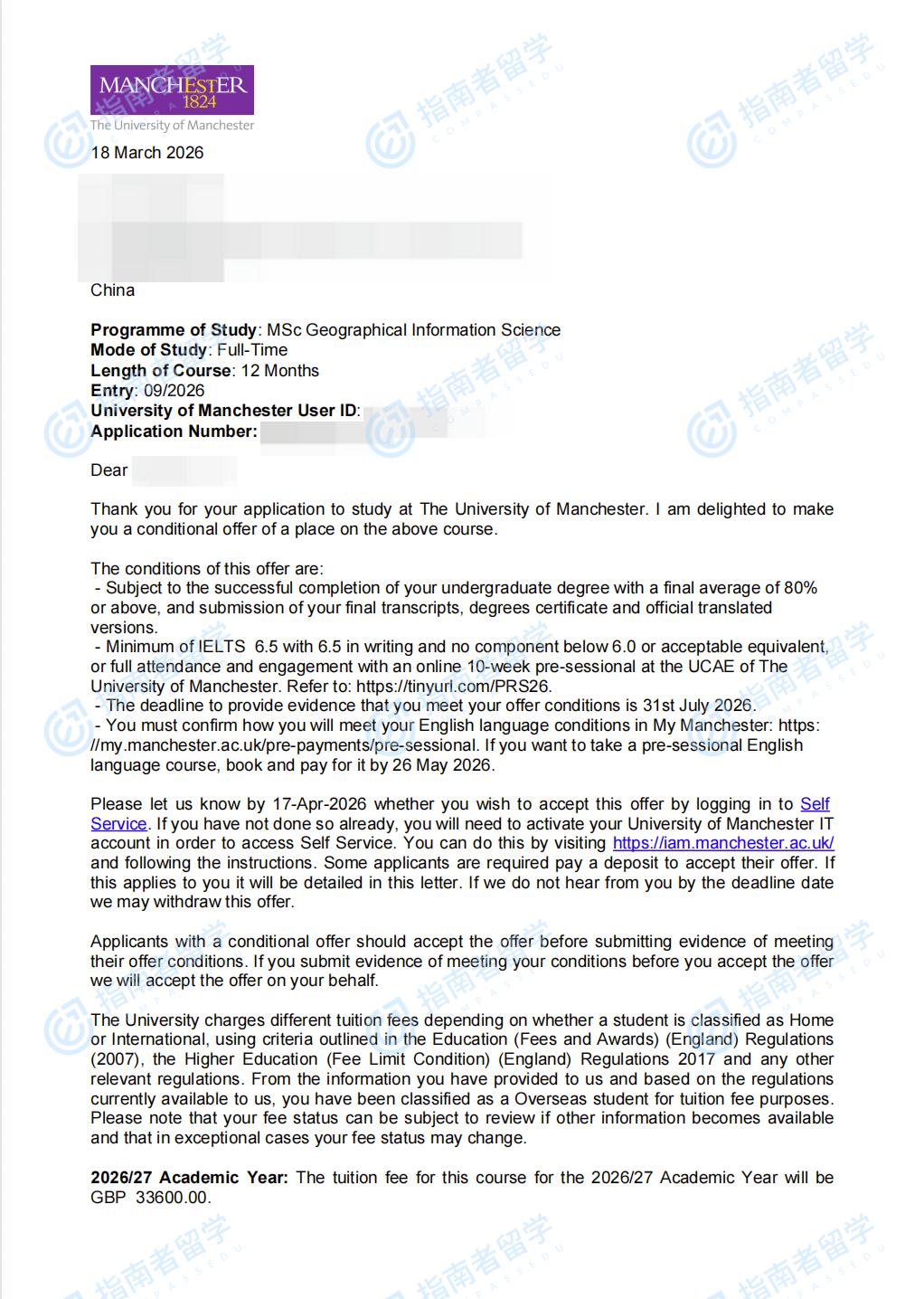 曼彻斯特大学地理信息科学理学硕士研究生offer一枚