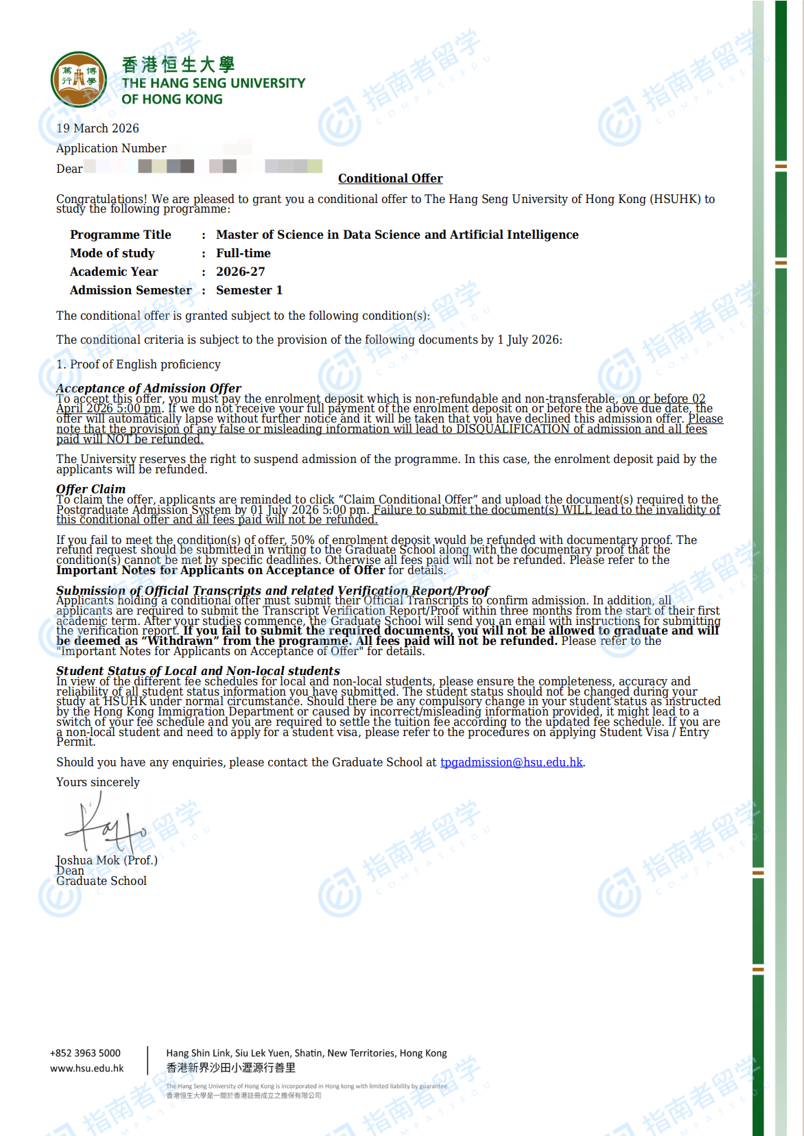 香港恒生大学数据科学及人工智能理学硕士研究生offer一枚