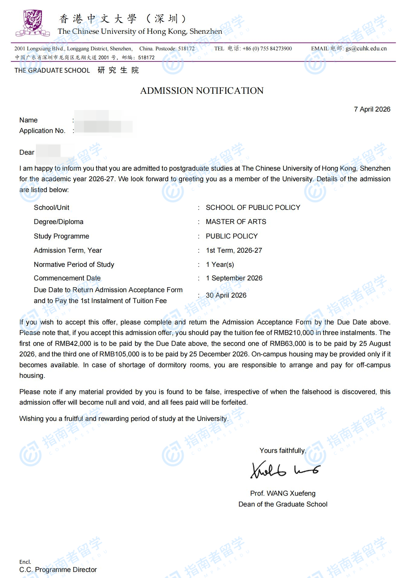香港中文大学公共政策文学硕士(CUHK-Shenzhen)研究生offer一枚