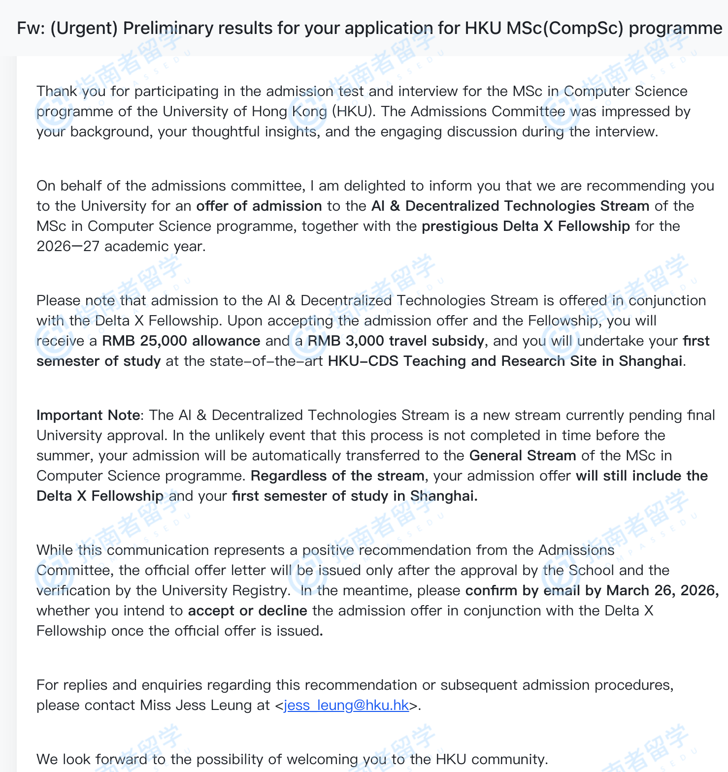 香港大学计算机科学理学硕士(人工智能&去中心化技术)研究生offer一枚