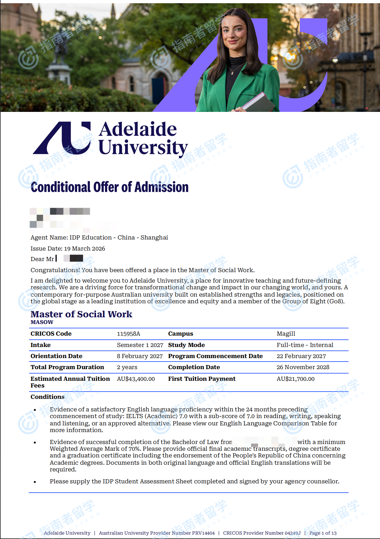 <p>阿德莱德大学社会工作硕士项目适合已经完成相关领域学士学位并希望提升社会工作职业技能的人士。学生将学习社会工作政策、社会工作实践技能、道德决策、基于人权的实践等高级课程。学校全面的课程使学生能够深入了解各种理论和方法,为学生提供为不同人群开展社会和人类服务工作所需的技能。在整个学习过程中,学生将拥有大量机会将所学知识应用于实际工作。在专门建造的先进工作室中进行专业互动模拟,以及长达1000小时的行业实习,将帮助学生提升专业社会工作技能。这些经历确保学生毕业时掌握在社会工作事业中脱颖而出所需的先进知识、技术和专业技能。