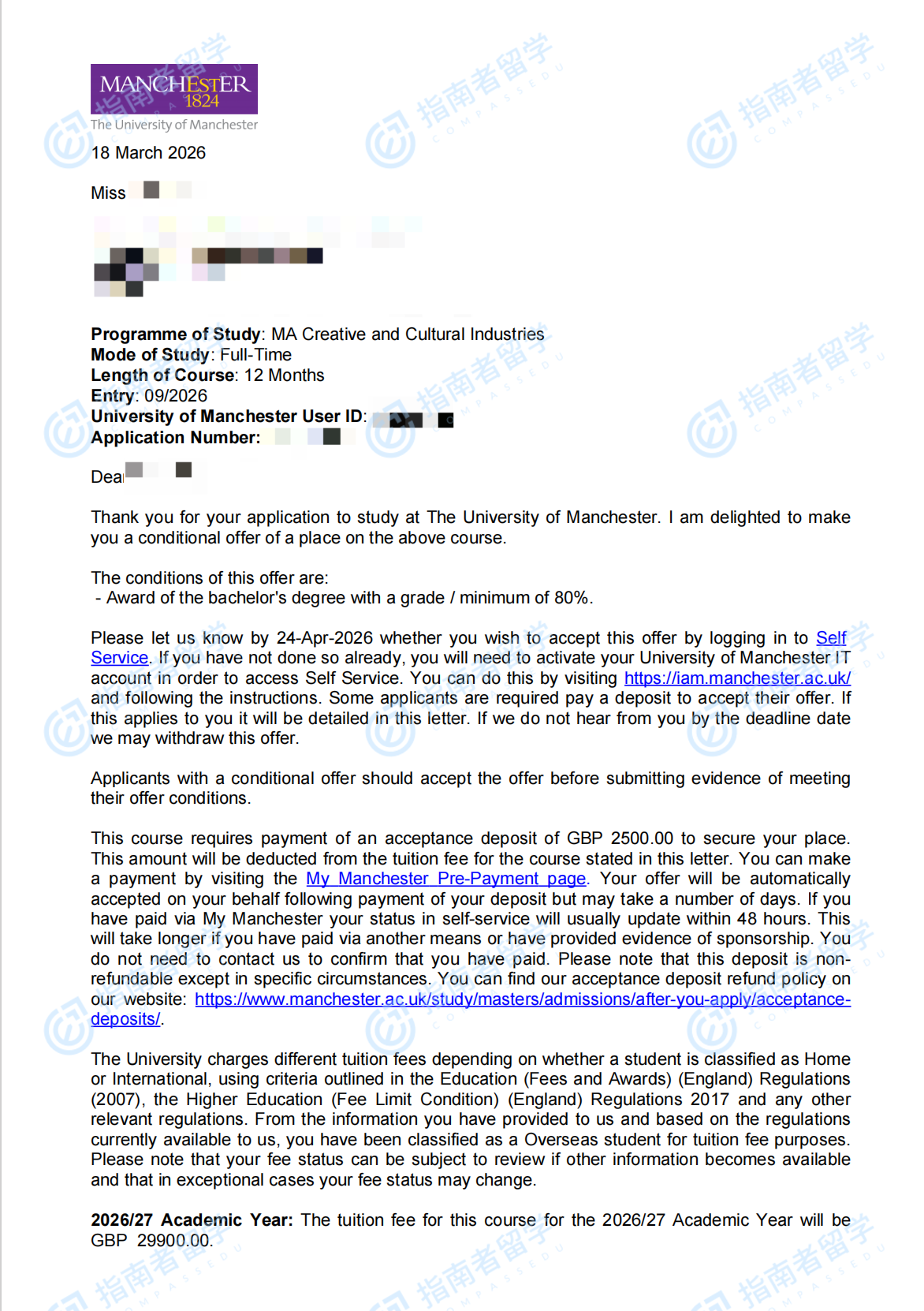 曼彻斯特大学创意与文化产业文学硕士研究生offer一枚