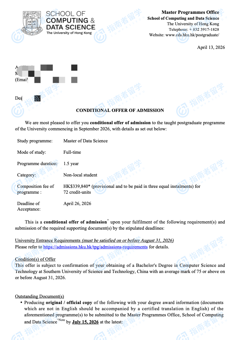 <p>香港大学数据科学理学硕士项目由香港大学统计与精算学院(主导)和计算机学院联合创办。该课程旨在为毕业生提供数据科学原理和实践方面的培训。考生应具备微积分和代数、计算机编程和统计学入门的知识,并应在这三个科目或相关领域中的每一个科目至少学习过一门大学或中学后的证书课程。</p>