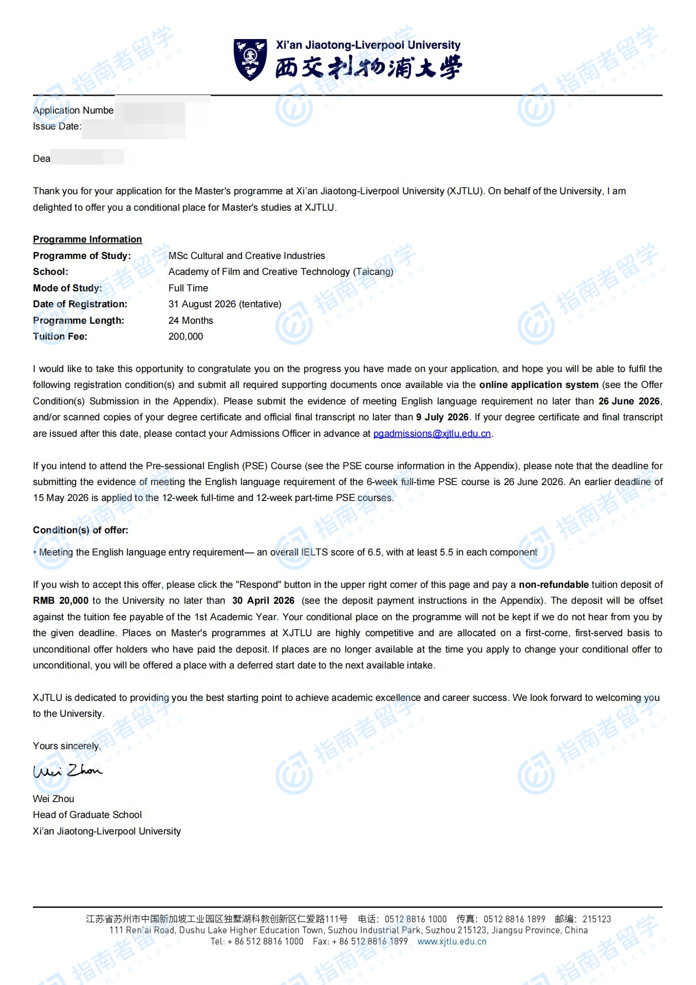 西交利物浦大学文化与创意产业理学硕士研究生offer一枚