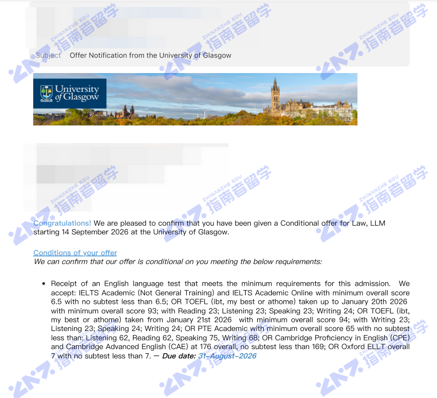 <p>格拉斯哥大学法学硕士项目允许学生从法学院提供的各种硕士课程中进行选择。学生有机会选择适合自己学术需要的学习计划,并可用于未来就业或学术专业化。如果一般对法律感兴趣,但尚未确定特定的专业领域,本课程将提供一些灵活性和选择。学生可以从提供的全部课程中构建自己的法律研究课程。学生将受益于卓越的设施,包括专门的法学院图书馆;主要的大学图书馆还收藏了大量的法律资料和官方出版物,是一个欧洲文献中心。此外,学校开设各种实务模拟项目及模拟法庭,学生可以参加国内及国际比赛,往届成绩斐然。学生还可以积极参加学校举办的学术讲座,与优秀法官及律师展开学术交流。</p>
