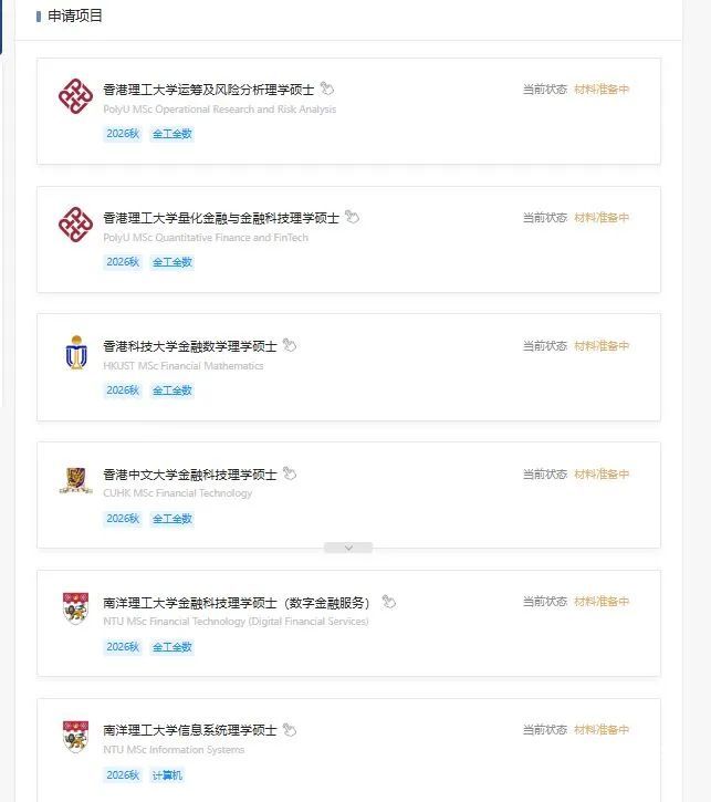选校只用了不到一小时。NTU区块链放最前面,HKU的项目挂在“理论上还开着”的位置上,剩下的两个春季项目纯粹当救生艇。