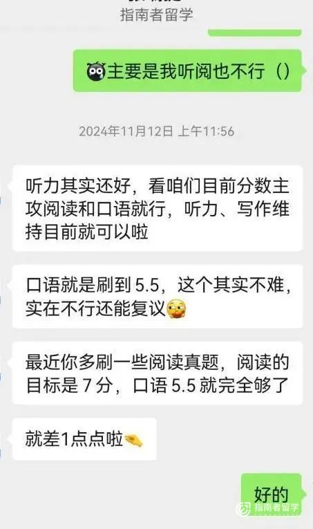 后回来说指南者负责对接的顾问张老师“态度好,很专业”。