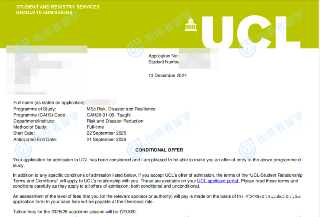 喜欢UCL是因为,它是我所有申请的院校专业中,唯一一个和我本科专业同方向的,并且UCL的应急管理可以说是走在世界前列的。激动过后,我选择继续备考雅思,一心冲刺UCL的语言。