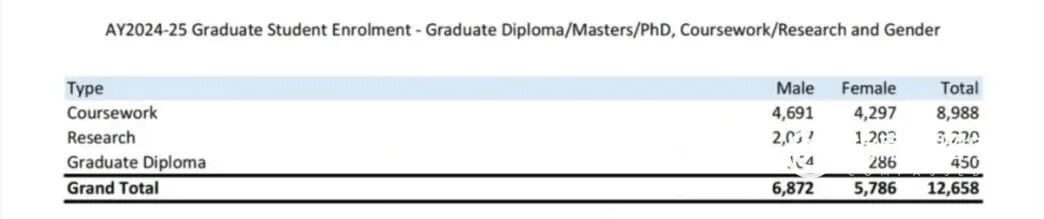 2024/25学年,NTU研究生总人数达12,658人,较上年增长19.3%。其中授课型研究生从7000余人上涨到8988人,扩招幅度高达26.9%。