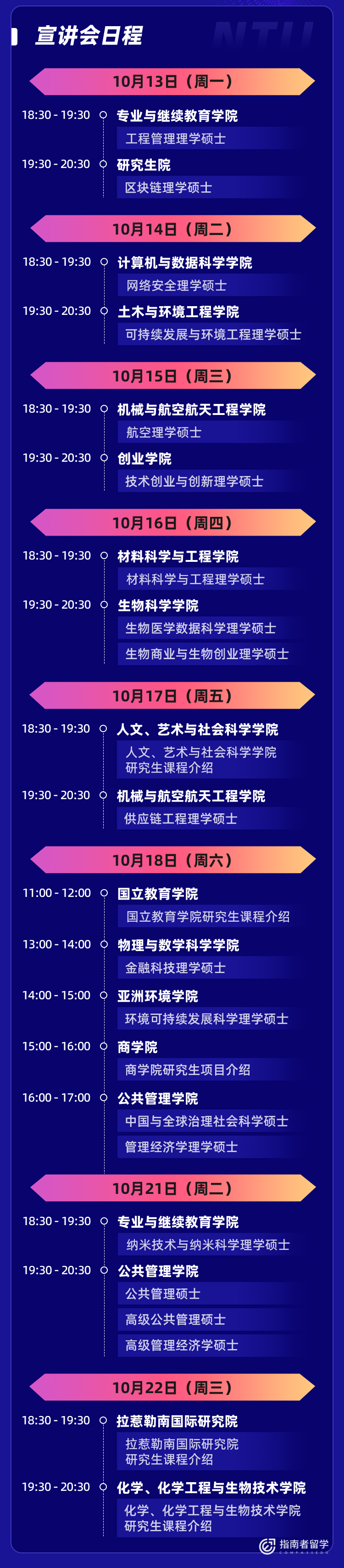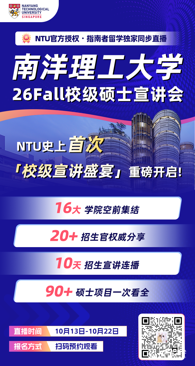 而指南者留学作为本次南洋理工大学独家授权的宣传合作方,将全程同步直播每一场“校级宣讲盛宴”!