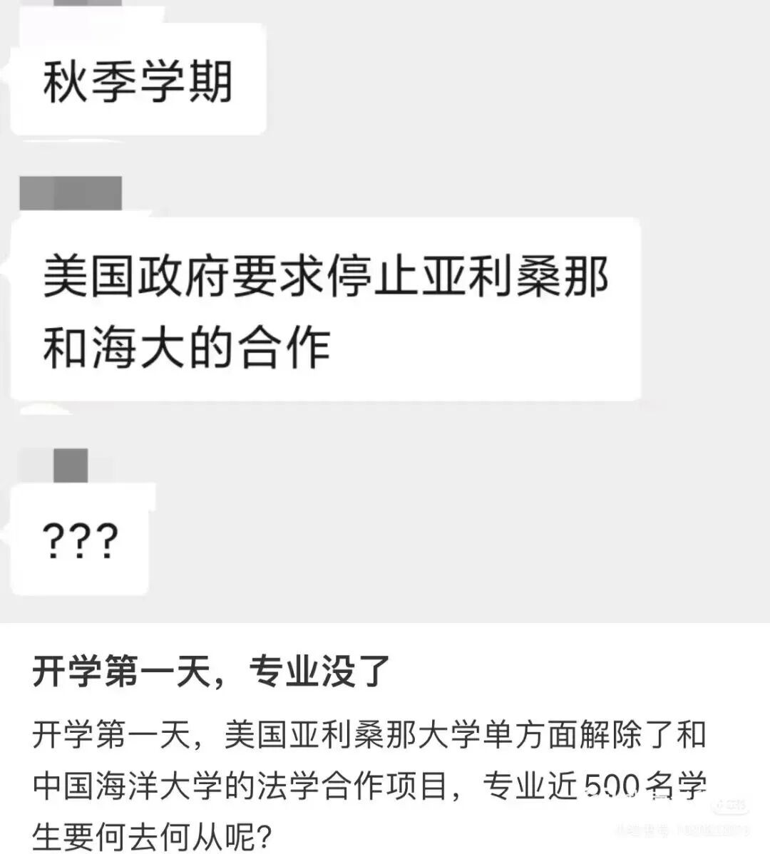 截至目前,多所与美国亚利桑那大学合作的中外办学项目突然叫停,受影响院校有首都经济贸易大学、中国海洋大学、河北工业大学、西北农林科技大学、郑州西亚斯学院及哈尔滨工业大学,除哈工大是硕士项目外其余均为本科项目。