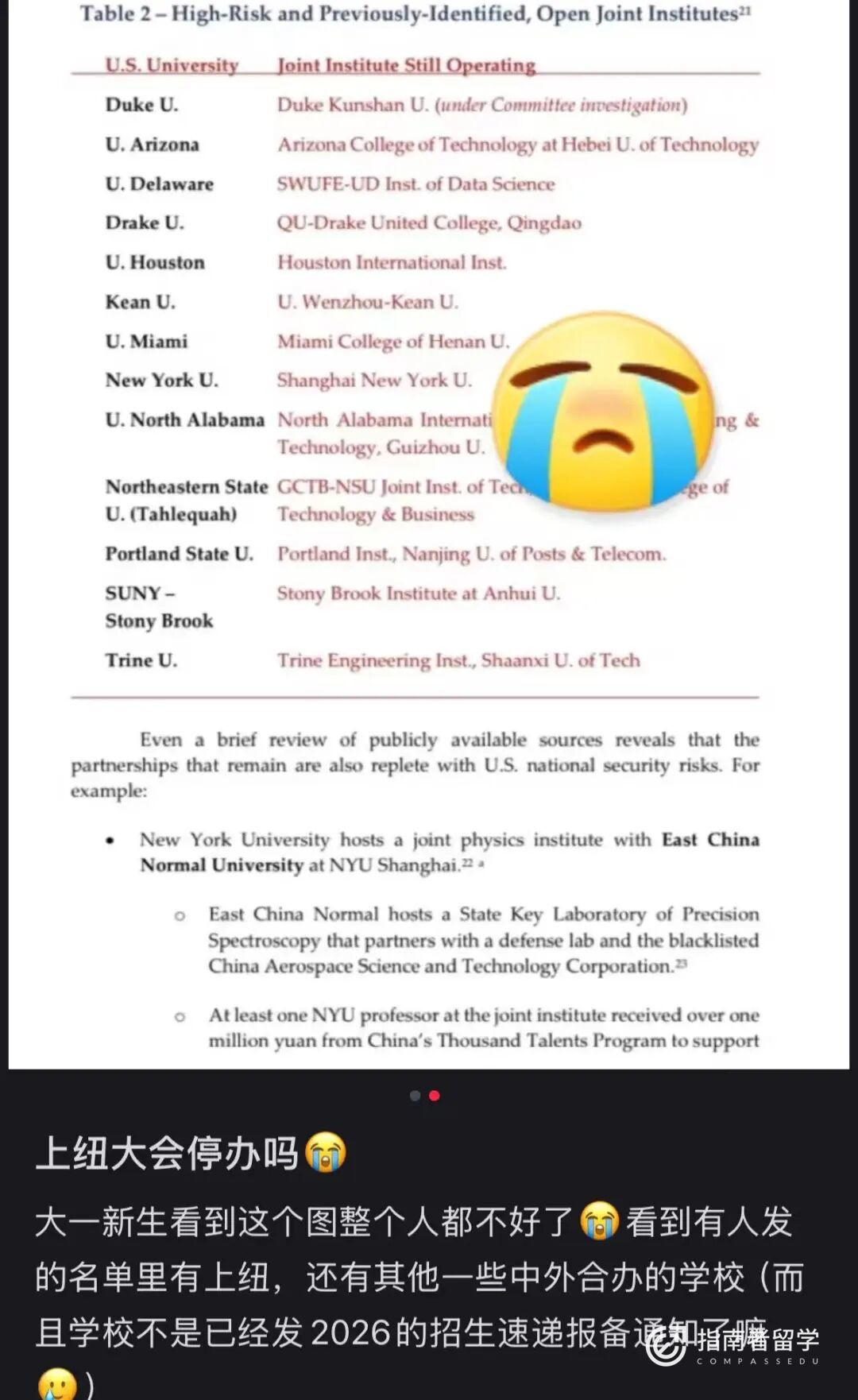 今年9月,美国国会相关委员会联合发布了又一份报告,特别点名批评了上海纽约大学、昆山杜克大学等仍在运营的中美联合学院。