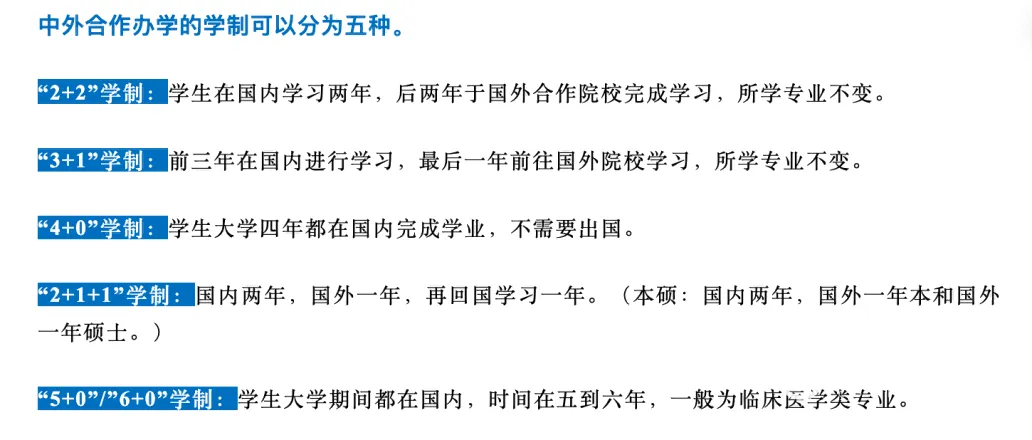 除了广为人知的独立法人资格的中外合作大学(S11院校),还有大量非独立法人机构的办学项目,以及不同培养模式(4+0、3+1、2+2等)的中外合作专业。