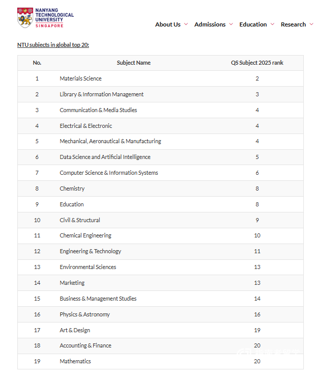 数据科学与人工智能、化学工程、计算机科学与信息系统等10个细分学科,也都进了全球前十。对于理工科学生而言,NTU的专业资源和实验设备是极具吸引力的。