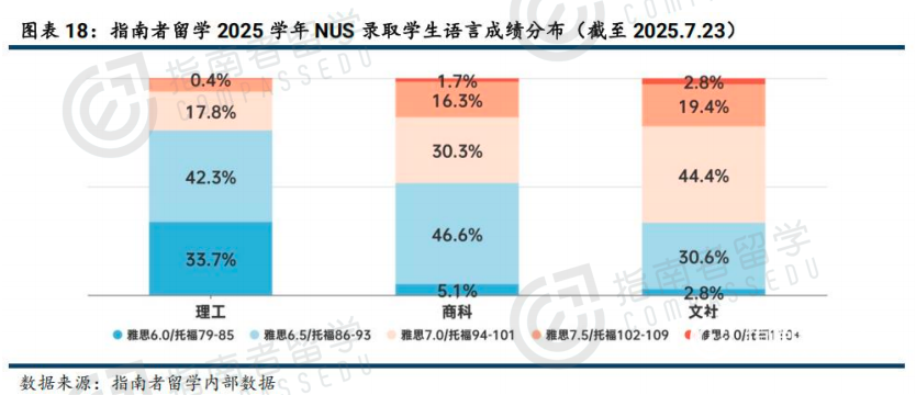 理工科以雅思6.0-6.5为主,商科多为雅思6.5-7.0,文社科雅思7.0占比最高。