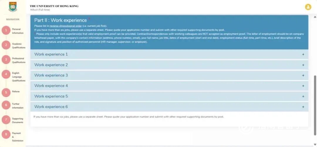 从2026年秋季入学申请开始,香港大学网申系统直接列出了实习证明的七项硬性规定,申请者必须全部满足: