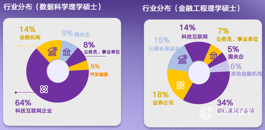 行业分布上,数据科学的毕业生64%进入了科技互联网企业,14%选择金融机构,17%入职国央企/事业单位,5%从事了汽车能源等其他行业。就业范围广泛分布于科技互联网、金融、高端制造、新能源等热门行业。