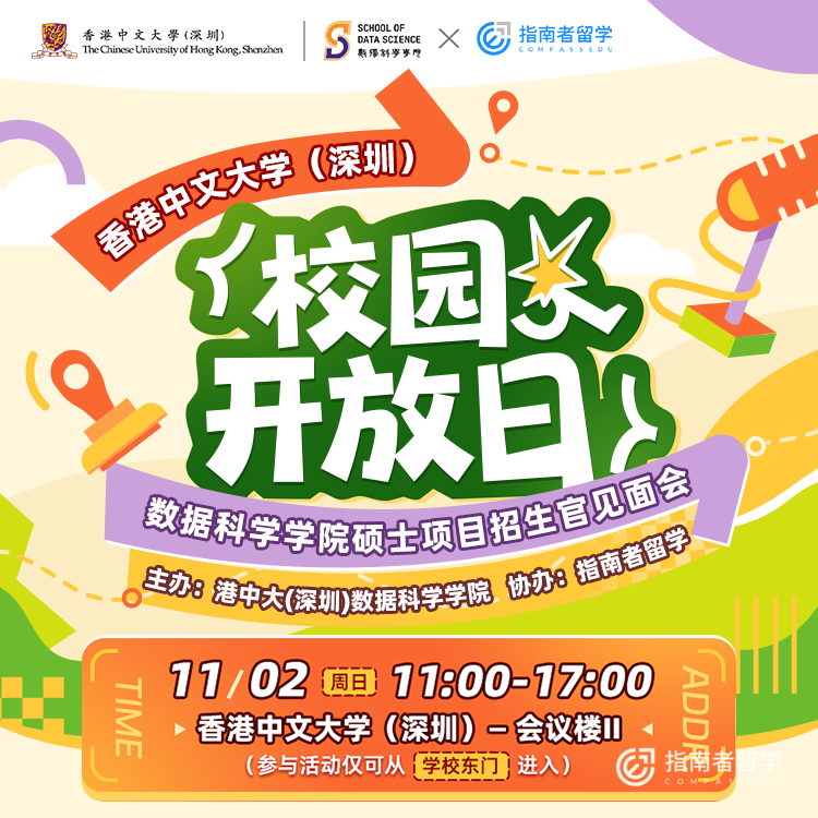 11月2日香港中文大学(深圳)的校园开放日暨数据科学学院硕士项目招生官见面会,绝对是你不可错过的重要机会!